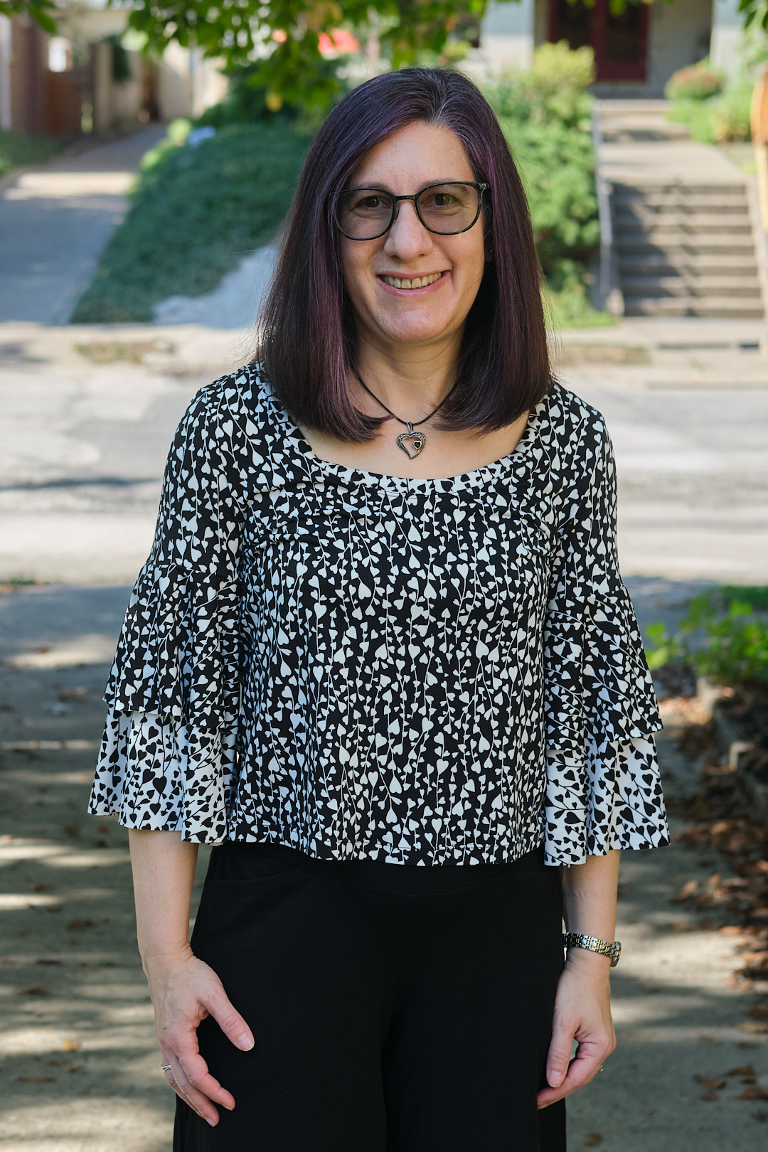 Overall, I’m happy with this top. This is not a style I normally wear, and it may be more difficult to layer than my typical long-sleeve tshirts. But it goes well with both wide and skinny jeans as well as black dress pants, and it should not require ironing. I really like this long-sleeve version (now that I shortened the sleeves) but I also like the sleeveless and 3/4 length versions other sewists made.