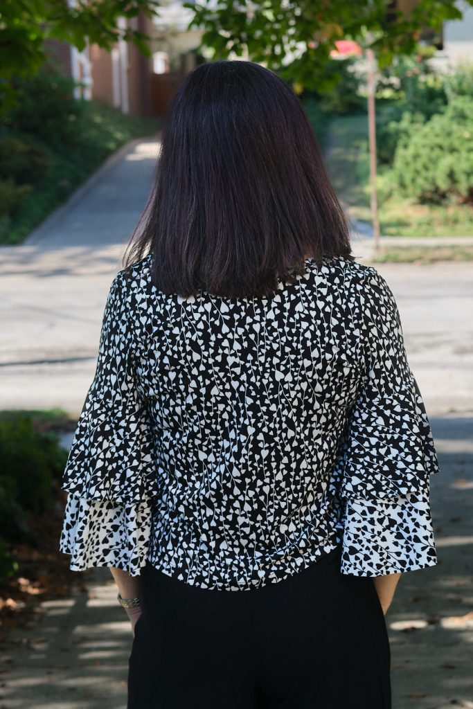 I love the Pattern Emporium Be Mine Balloon Sleeve top pattern but find it difficult to wear under a sweater, and even if it fits, a sweater would hide the beautiful sleeves. So when I saw that sewist Livia Jonker-Yamada had hacked Be Mine into a jacket, I was excited to give it a try myself so that I could wear it over a shirt. I waited for Liv’s promised blog post with instructions, but it never came so I figured it out myself.