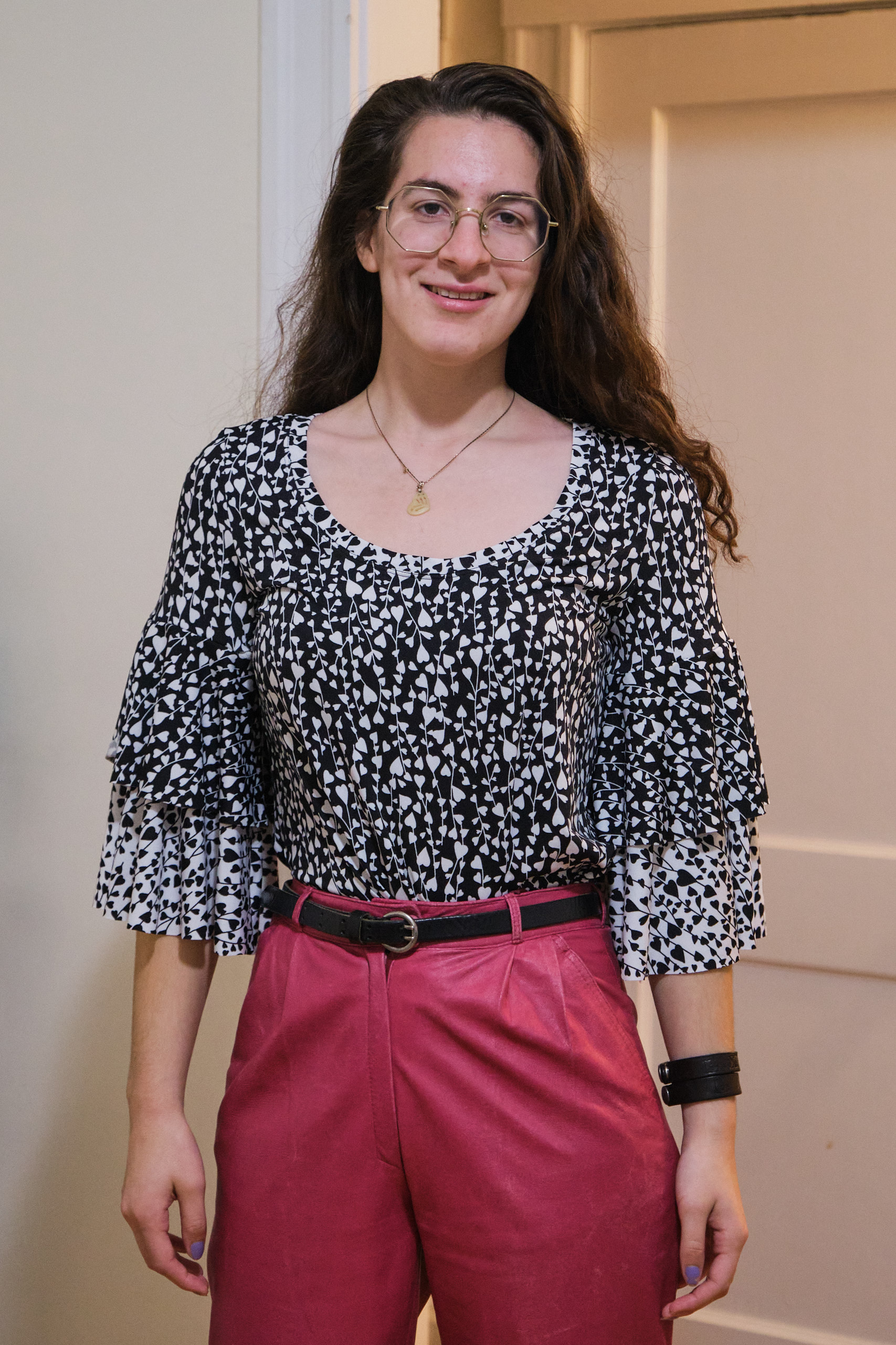 Overall I’m happy with the Alva top, and it does go nicely with my Nori pants and the wide leg pants I made out of the same fabric. With this fabric, the Alva doesn’t drape all that well, and it tends to hang away from my body, especially in the back. This might be less of an issue with the longer hem length or a more drapy fabric.