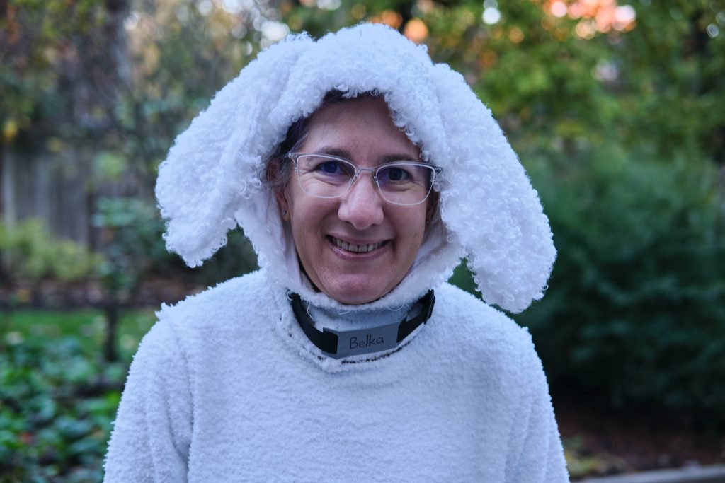 I think the costume worked pretty well and was even reasonably comfortable to wear. I wore it all day at work and while walking around my neighborhood watching the trick-or-treaters. My students and colleagues enjoyed it and Belka didn’t seem to mind. Several people asked me whether she was confused by it. I think she was at first, but as soon as she sniffed me she knew it was me and she was unfazed.