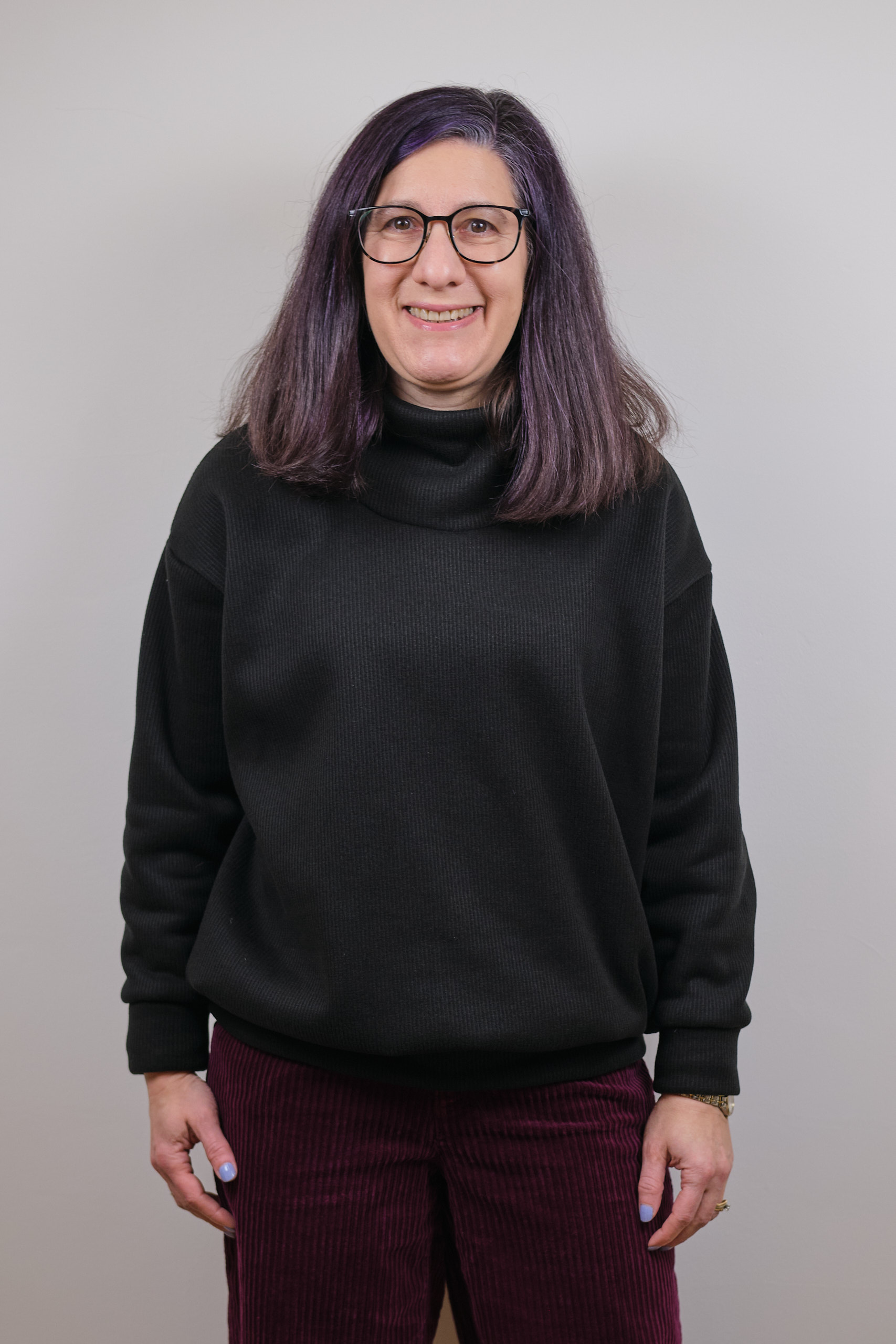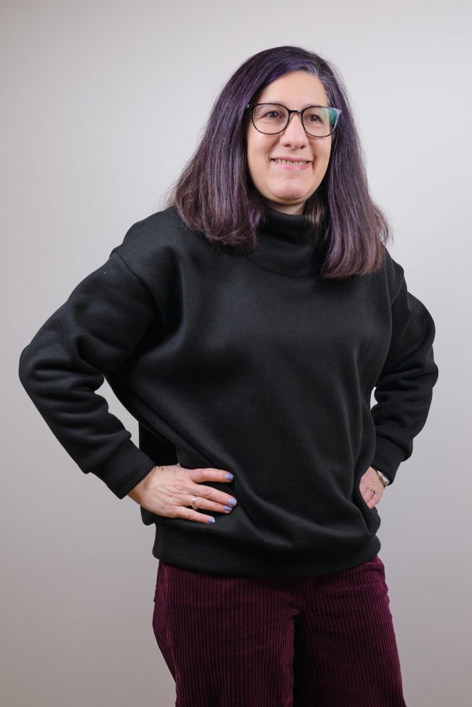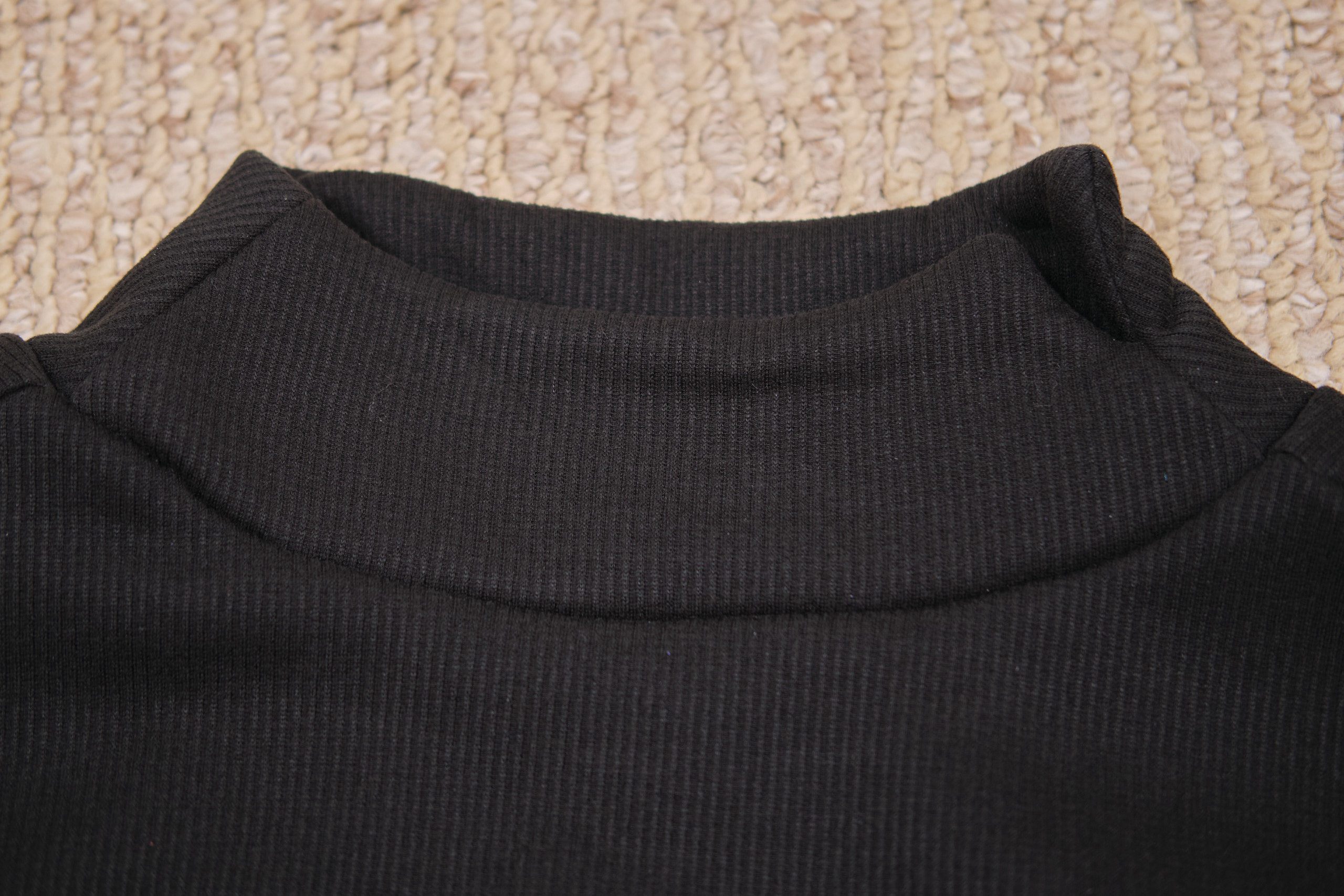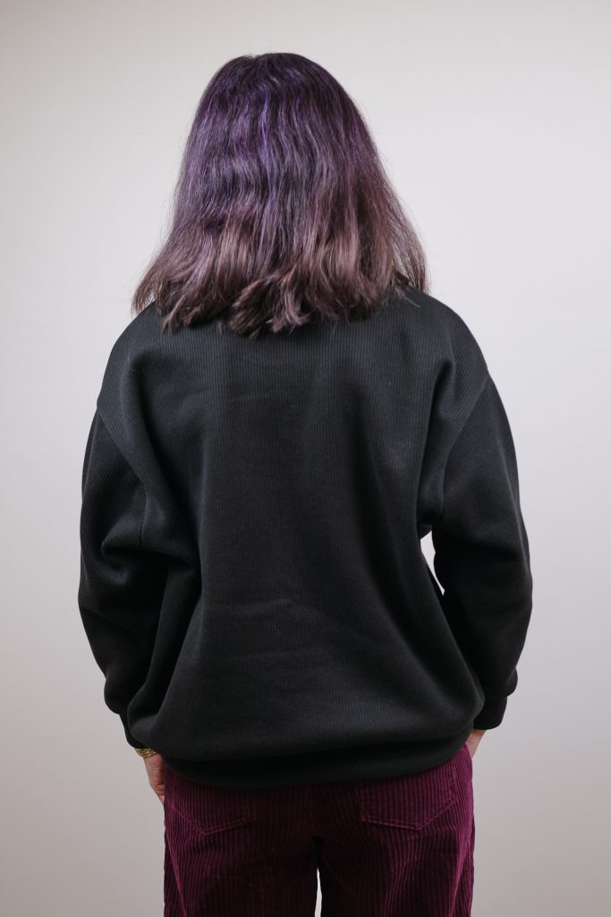 When Kayla Tarey hacked the Greenstyle Sav’s sweatshirt pattern into an oversized sweatshirt suitable for a heavy, low-stretch knit, I wanted to try it too. Kayla used Surge Fabric’s Polartec Wind Pro ribbed sweater fleece, which is 100% Polyester, 380gsm, with 25% horizontal and 0 vertical stretch. It has a 2×2 rib knit on the front side and soft sherpa fleece on the back. This seemed perfect for a cold-weather sweater. The folks at Greenstyle turned Kayla’s hack into the Surge Sweatshirt pattern, making it much easier for everyone to copy this style. The pattern works for a variety of knit fabrics, but because it doesn’t have a neck band and the bottom band and cuffs don’t require a lot of stretch, it works fine for heavy 2-way stretch fabric that doesn’t have a lot of stretch. I had 2 yards of black Wind Pro and decided to try it out.
