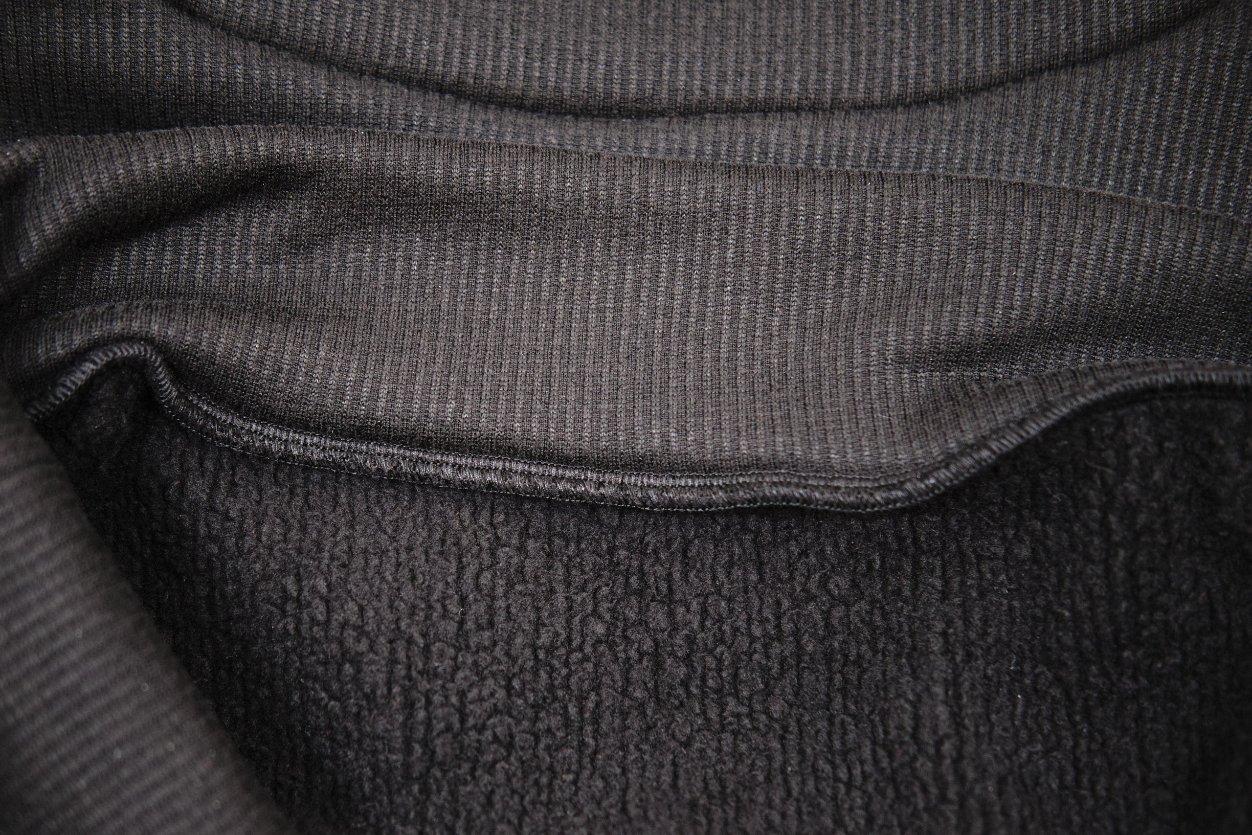Greenstyle Surge Sweatshirt, size C2 regular length, sleeves shortened by 2 inches, in 1 yard black Polartec Windpro ribbed fleece.